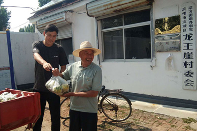 龍崖合作社為貧困村老人分發(fā)蜜瓜 周家坊扶貧